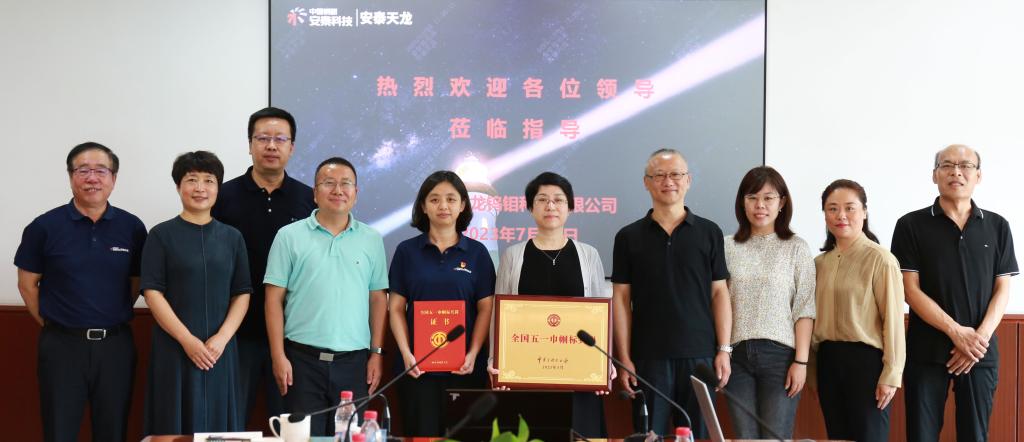 为深入贯彻党的二十大精神,全面落实中华全国总工会办公厅《关于开展“工会送清凉、防暑保安康”活动的通知》精神,切实维护好高温期间广大职工的劳动健康权益,7月26日,中国机械冶金建材工会二级巡视员刘向东,钢铁工作部部长、一级调研员王欣到中国钢研所属企业安泰天龙(天津)钨钼科技有限公司开展“送清凉”活动,并为获得“全国五一巾帼标兵岗”荣誉称号的安泰科技核聚变用难熔金属材料研究团队颁奖。天津市总工会副主席王克文、天津市宝坻区总工会主席刘玉玲、天津市总工会财务资产管理部部长邢维涛、中国钢研工会副主席于芳芳、安泰天龙(天津)钨钼科技副董事长杨文义等陪同。