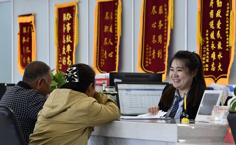 2024年3月25日,北京市大兴区庞各庄镇政务服务中心的工作人员耐心为群众解答问题。大兴区庞各庄镇政务服务中心用“最多跑一次”的工作理念为企业和群众提供了便利化、精准化、个性化的衍生服务。新华社记者 李欣 摄